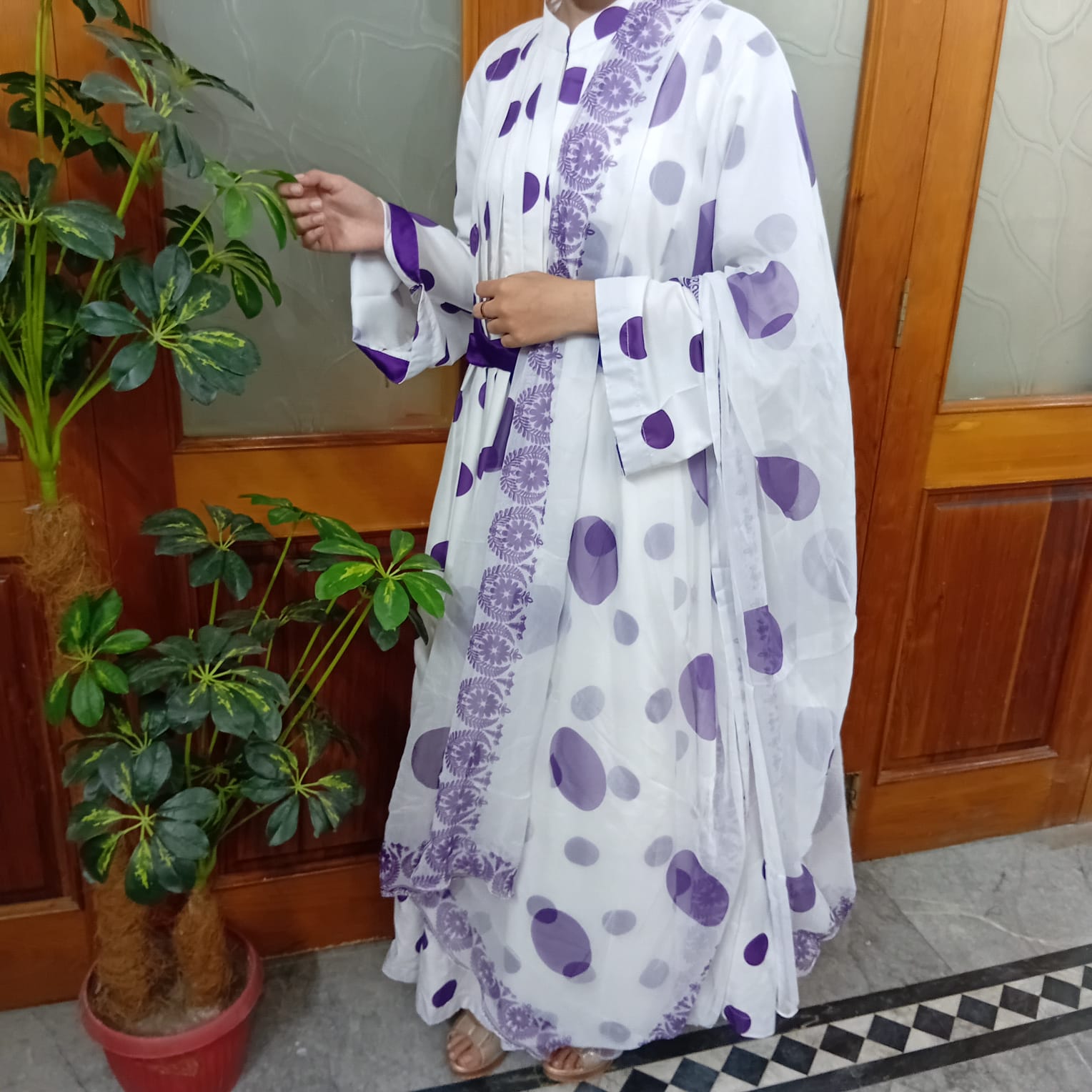 Bloomie Flare is a soft Swiss Lawn frock with a flowy silk belt and chiffon dupatta. Its gentle prints and lightweight feel make it a perfect summer pick.